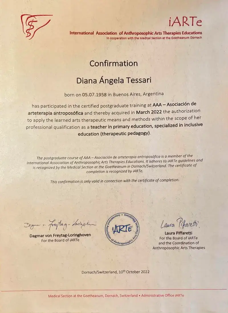 • Cursos y talleres internacionales en Arteterapia y Goetheanismo (Suiza, España, Italia)